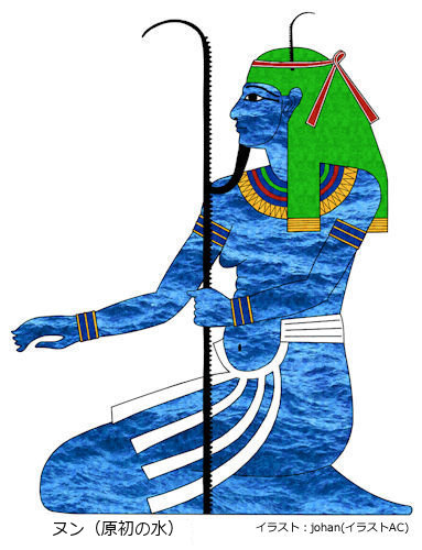 エジプトの始まりは、水でした。水の神はヌンでした。これを原初の水と言います。 水の神ヌンに、意志の力で創造の神アトゥムが生まれました。アトゥムは、水面に原初の丘を作り、降り立ちました。 アトゥムは、二柱の神を産みました。大気の神シュウと、湿気の女神テフネトです。シュウとテフネトは結婚して、男神と女神を産みました。大地の神ゲブと天空の女神ヌトです。 ゲブとヌトは、夫婦となり、深く愛し合いました。ゲブ(大地)とヌト(天空)がぴったり抱き合ったものですから、間に誰も入れません。これを見た父親のシュウ(大気)は二人の間に割って入りました。大地と天空が引き離され、間に大気が満ちました。 ヌトとゲブは、4柱の神を生みました。男神オシリス、女神イシス、男神セト、女神ネフティスです。 創造の神アトゥム、大気の神シュウ、湿気の女神テフネト、大地の神ゲブ、天空の女神ヌト、そして4柱の兄弟姉妹のオシリス神・イシス女神・セト神・ネフティス女神。この神々をヘリオポリスの九柱神と言います。 オシリスは、妹イシスを妻とし、セトは、やはり妹のネフティスを妻としました。 長兄のオシリスが、エジプト全土を統治する王となりました。神が王であり、王は神なのでした。 オシリスは、エジプト王になるとすぐに、エジプトの人々のために働きました。 オシリスは、武力を用いることなく、高貴な徳と、説得力のある言葉の力で人々の心を導きました。 オシリスは、エジプト全土を巡って、人々の生活を向上させましたから、国民から感謝され、慕われました。 オシリスの妻イシスは、夫の留守中、自分が代わって宮廷を治めました。互いに信頼しあっていましたから、なにごとも、滞りなく進めることができました。 面白くないのが、弟のセトです。もともと荒々しい性格の持ち主で、自分が王にならなかったことが不満でたまりません。 セトは、仲間たちと相談して、悪だくみをしました。ひそかに、オシリスの体の寸法をはかり、その寸法にぴったり合った、豪華な箱を作ったのです。 ある夜、宮廷で宴が始まった時、セトは宴席に箱を持ち込んできました。 集まっていた神々が、その箱の美しさ、豪華さに目を見張り、褒めたたえました。 セトは、どなたでも、この箱に入ってぴったり収まったら、この箱を進呈しますと、冗談めかして言いました。 それではというので、つぎつぎと箱に入りましたが、体が小さくて隙間ができたり、大きすぎてはみ出したりで、だれもぴったりとは収まりません。 セトは、兄のオシリスを振り返り、兄さんもどうですかと誘いました。私はいいよと手を振っていましたが、周りからも薦められたので、入ってみることにしました。 オシリスが箱の中に身を横たえますと、ぴったりと収まりました。セトが合図をすると、黒い影が押し寄せて、箱のふたを閉じ、外からボルトを打ち込み、熱く溶かした鉛をその上から注ぎました。 驚いたイシスが走り寄りましたが、セトに激しく突き飛ばされました。 黒い影は、箱を担ぐと走り出し、ナイル川に向かいました。そして、ナイル川の奔流に箱を投げ込んでしまったのです。箱はたちまち流れ下り、デルタ地帯の川筋を通って、地中海に流れ出し、波間に漂い、やがて夜の闇に見えなくなりました。 イシスは、海岸から大声で呼びましたが、声は闇に吸い込まれるばかりでした。 イシスは、夫を救い出すために船を求め、地中海に漕ぎ出すのでした。(浪) |